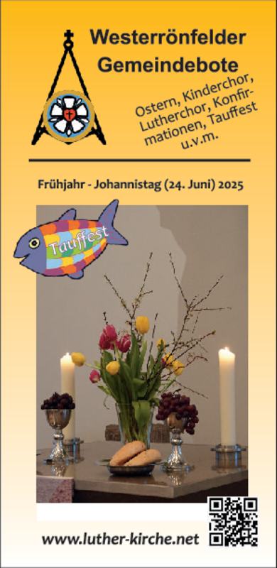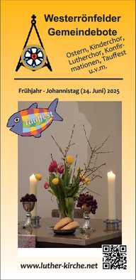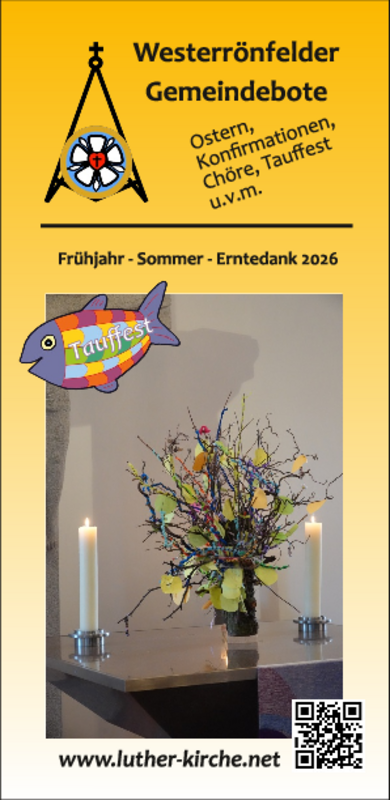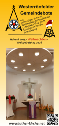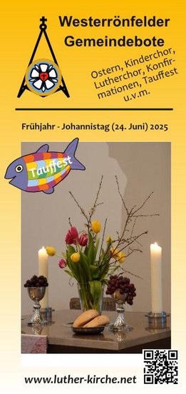 Der Gemeindebote erscheint 4 x im Jahr und wird teilweise verteilt oder liegt an verschiedenen Stellen aus. Gern können Sie auch ein Exemplar im Kirchenbüro abholen oder ihn hier downloaden: