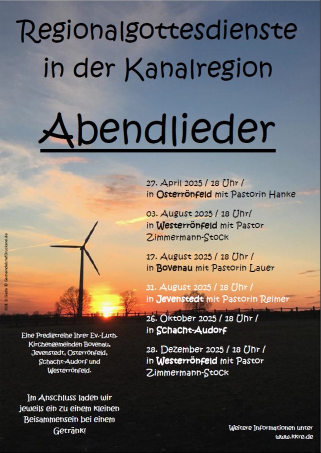 18 Uhr Regionalgottesdienst zum Thema Abendlieder